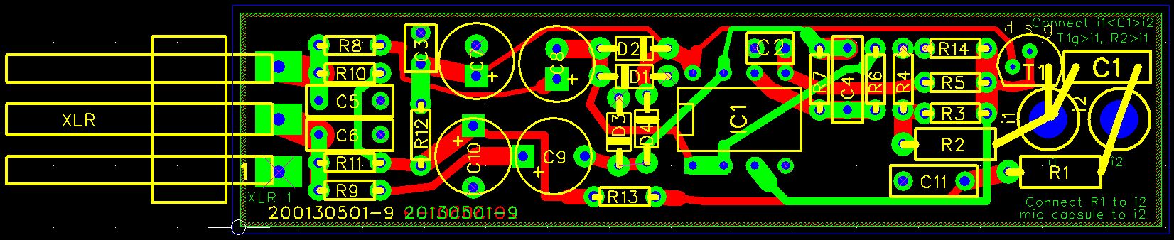 Let op: Als een electret element gebruikt wordt, komen R1, R13 en C11 te vervallen.